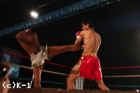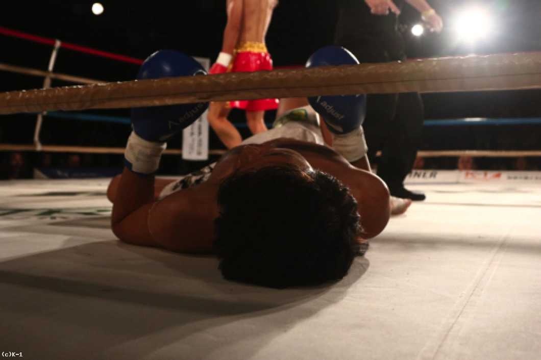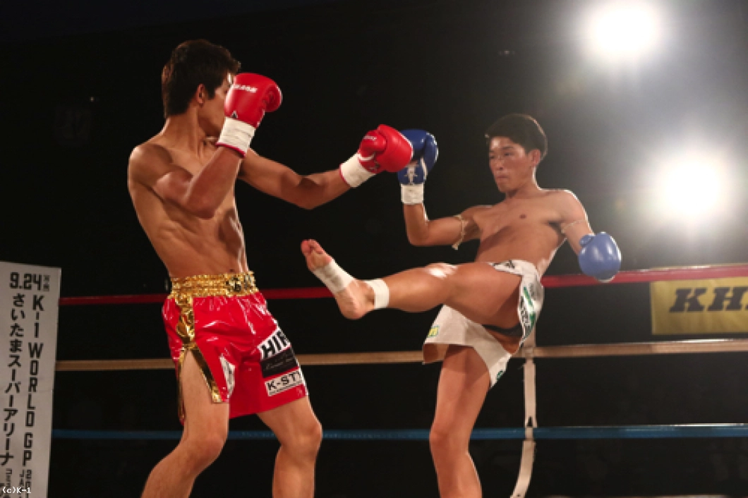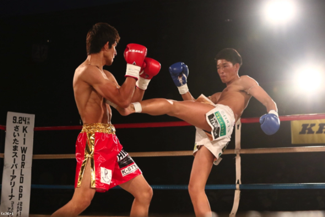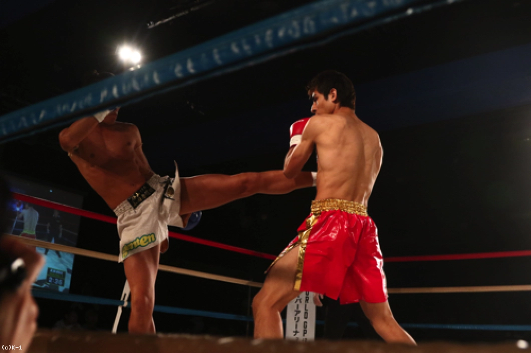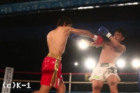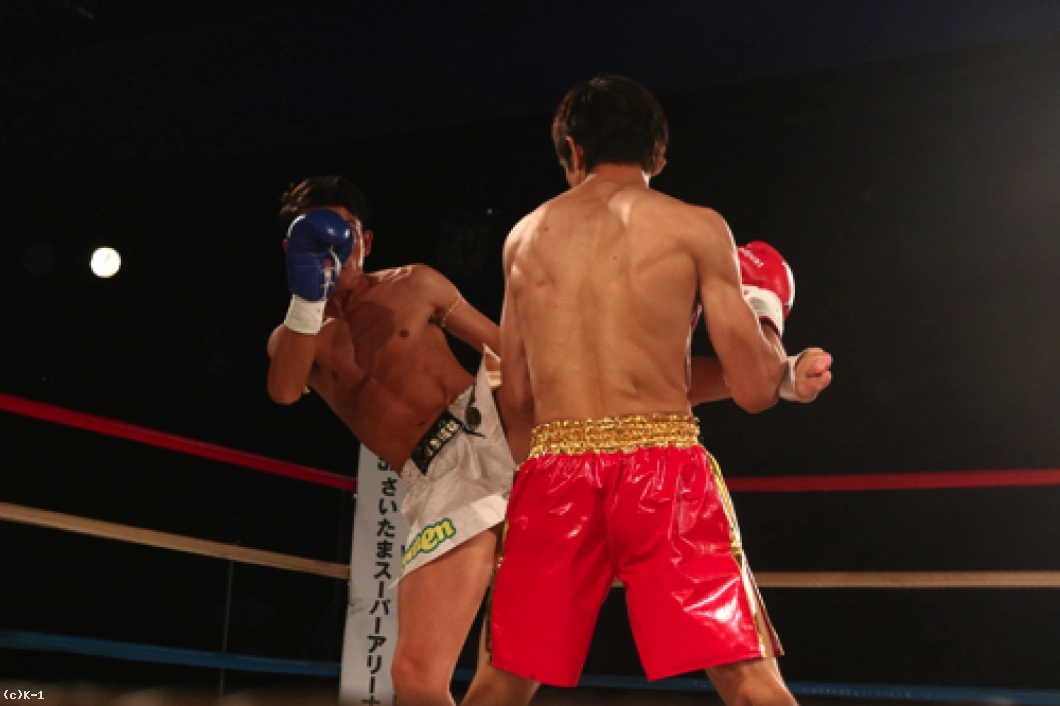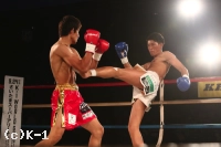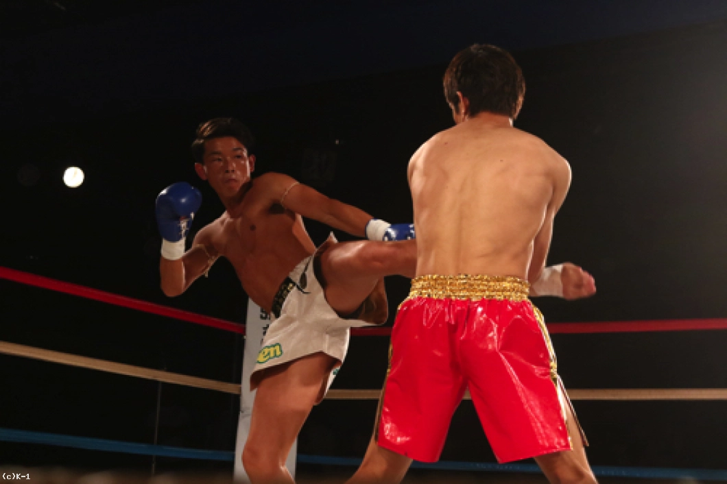 1R、オーソドックスの鈴木に対し、中條はサウスポーに構えて左ミドルを放っていく。軽快に左ミドルを連発していく中條だが、鈴木は蹴りのリズムと動きを見て取ったかのように、中條の蹴りにカウンターの右ストレートをズバリ。これで中條を打ち倒し、鮮やかなKO勝利を収めた。