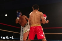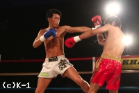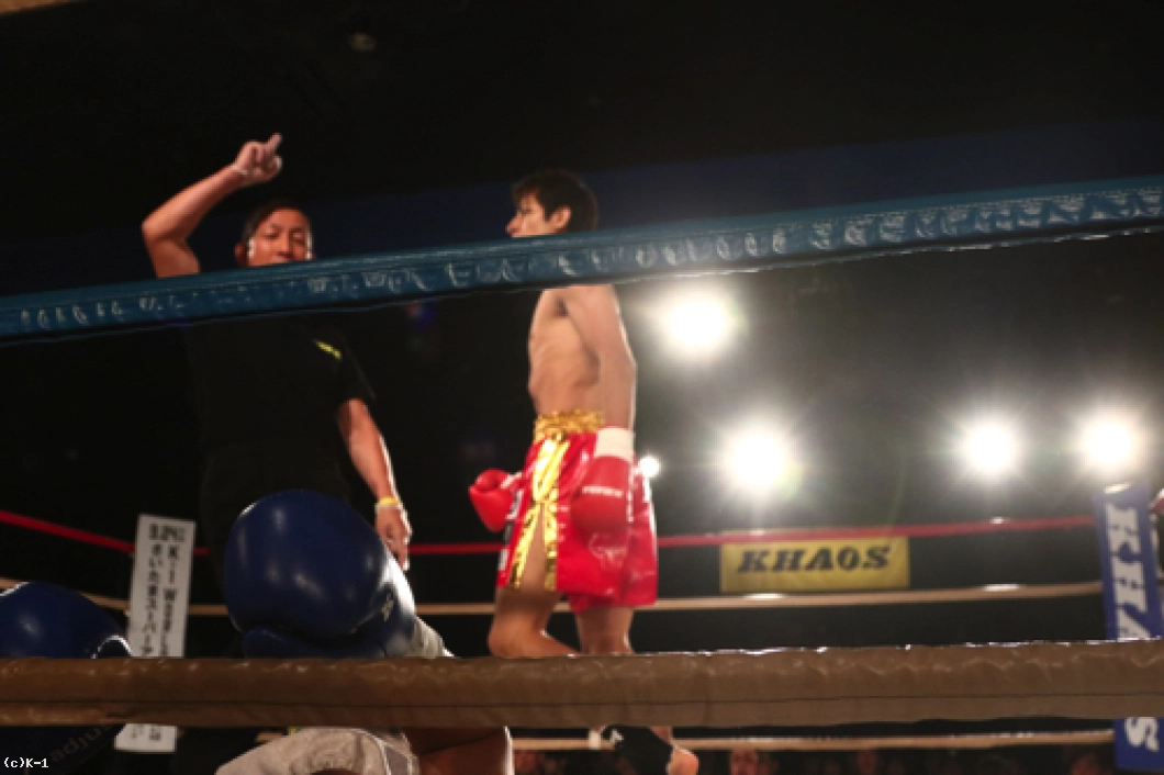 「たまたま試合の一カ月前に会長に『脇を締めて右ストレートを打て』とアドバイスをもらって、それがクリーンヒットしてダウンを取ってて勝つことが出来ました。(対戦相手の印象は?)構えがオーソドックスだと思っていたんですけど、サウスポーに構えていたのびっくりしました。ただ特に慌てたり、作戦を変えようというのはなくて、右ストレートを真っ直ぐ打つことを意識しました。(プロデビューから無傷の6連勝となったことについて)クロスポイント吉祥寺で練習している以上、負けられないと思っています。このまま連勝街道を突き進んでいきたいです。(今後の目標は?)自分はレベルスやクロスポイント吉祥寺を背負う気持ちでやっています。これからK-1・Krush・KHAOSにも出て、自分たちのパワーを見せていきたいと思います」