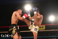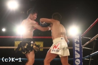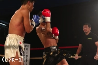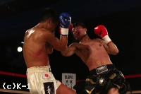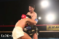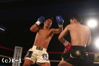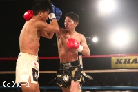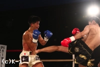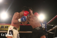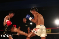 2R、右ストレートと左フックで出ていく篠原だが、ISSEIはこれに左ミドルと右ローで応戦し、また篠原を押していく。両者そこからショートパンチの打ち合いを展開。ISSEIはパンチ一辺倒にならず、右ローを効かせる。