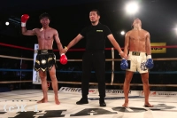 3R、ISSEIは左フックとローで前進。篠原はこれをホールディングで押さえてしまい、レフェリーから注意を受ける。変わらずパンチとミドルで押していくISSEIは右アッパーを連打。篠原が反撃に出てきても、これをさばいて左フックとストレートを打ち込み、最後もISSEIが左右連打で篠原を押して終える。