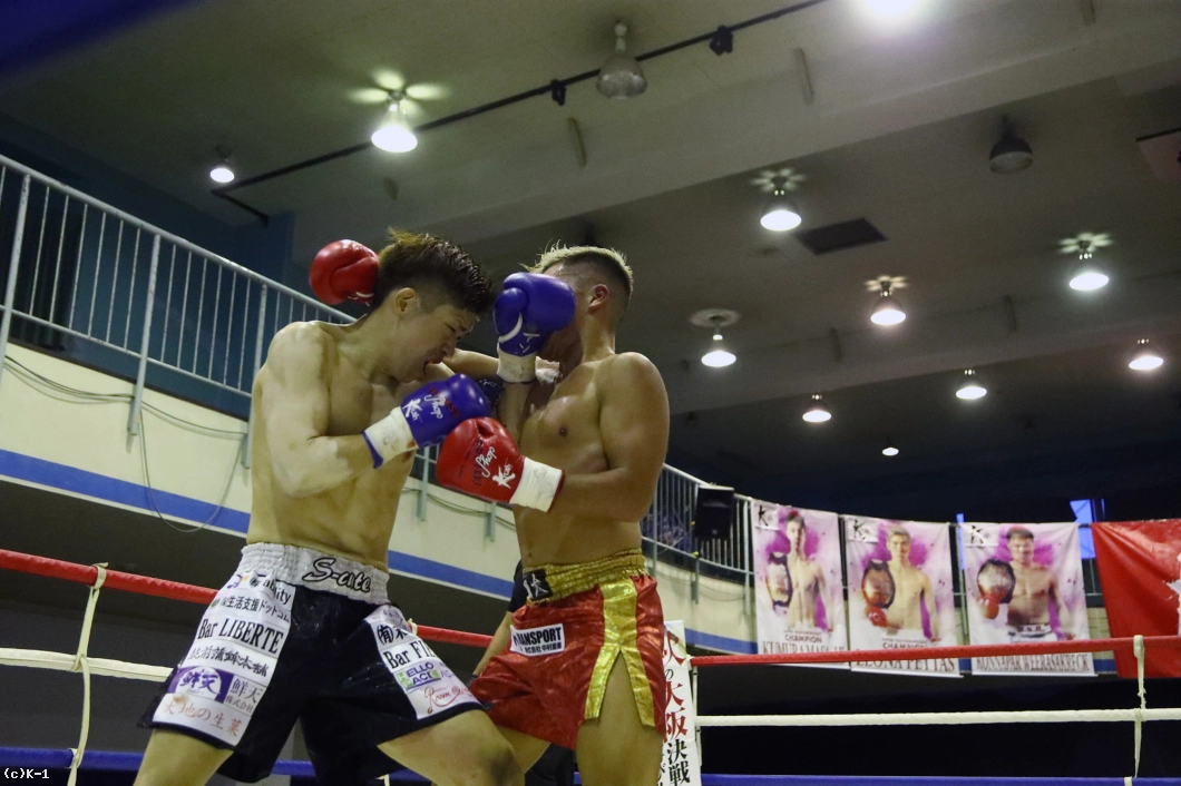 3R、ポイントでリードを許した勇治は一気に距離を詰めて右フックから連打。ボディブローを織り交ぜながら目黒を攻め込む。下がる目黒だったがミドルとローで応戦して譲らない。勇治の猛追を振り切った目黒が判定勝利を収めた。