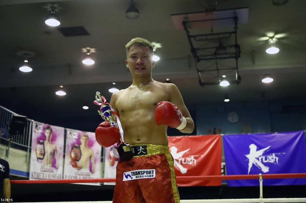 「こういう時期に会場に応援に来てくださったみなさんありがとうございます。そしてジムのみなさんにも感謝して、これからも頑張っていきたいと思います。(対戦相手の印象は)別の団体でチャンピオンにもなっていて、頑丈でタフでいい選手でした。前回の試合は熱くなりすぎたというかスタミナの消耗が激しかったんですけど、そこまで消耗しないようにペース配分だったり、要所要所で力を入れて戦おうと思いました。どうしても打ち合いになると力が入る過ぎるところがあって、そこは反省点だと思いました。(今後の目標は)タフな相手に勝てたことは大きいですが、課題はたくさんあるので、それを潰していきながら、上の舞台で活躍できるように頑張ります」