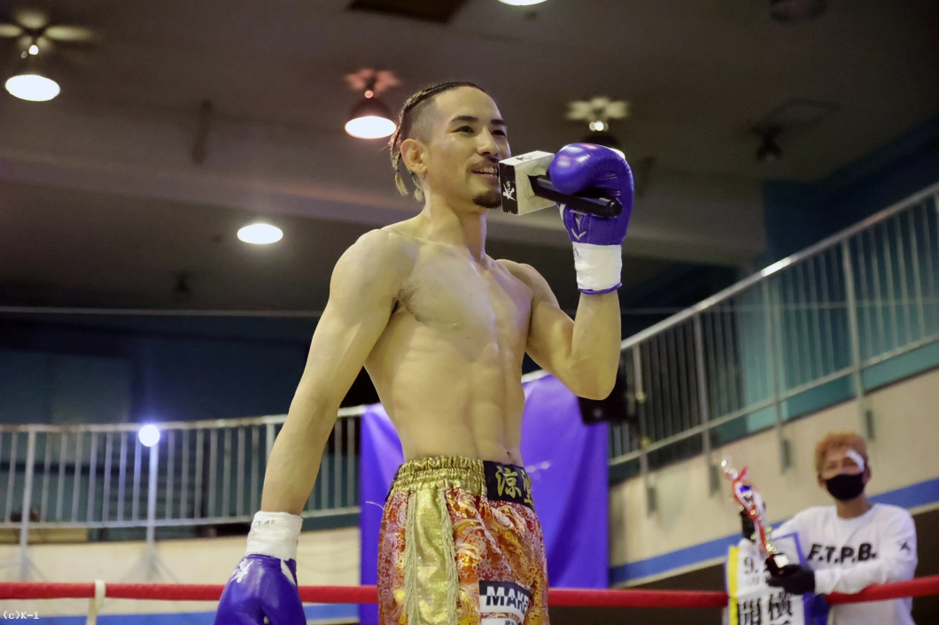「俺強すぎたかなって感じです(笑)。(対戦相手の印象は?)映像見た感じでは……特にあんまり気にしなかったです。相手が誰でも倒そうと思っていたんで。(今後の目標は?)格闘代理戦争出身の選手たちがK-1とかKrushのトーナメントに出ていて、俺が入っていないのが腑に落ちないんで。今日の試合を見て分かったと思うんですけど、多分俺トーナメントいけると思うんですよ。今後もよろしくお願いします」