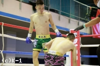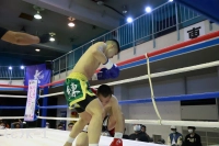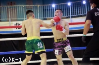 2R、小島は左フック、パンチからローにつなげる。距離をとる山西は上手く小島に右ストレートを合わせて、このラウンドもダウンを奪う。立ち上がった小島はワンツーから左ボディとパンチをまとめる。山西はしっかりブロックを固めてインロー・右フックを返す。