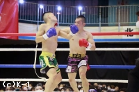 3R、ポイントでリードを許す小島はすぐに距離を詰めて左右のフック。山西はここもインローを返して、右ストレートでダウンを奪う。しかし立ち上がった小島はひたすら距離を詰めてパンチで攻め続けて試合終了。ダウンの数で山西が大差の判定勝利を収めた。