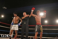 3R、牧平が左ハイキック、小鉄も右ストレートで前に出る。左ハイ、左ミドル、奥足ローの牧平。小鉄も右ストレートから前に出る。牧平の奥足ローで小鉄の足が止まりかけるが、小鉄も必死に踏んばってパンチで前進。牧平にロープを背負わせてパンチを連打する。それに屈せず牧平もローを蹴り返し、一進一退の攻防のまま試合終了のゴングが鳴らされた。