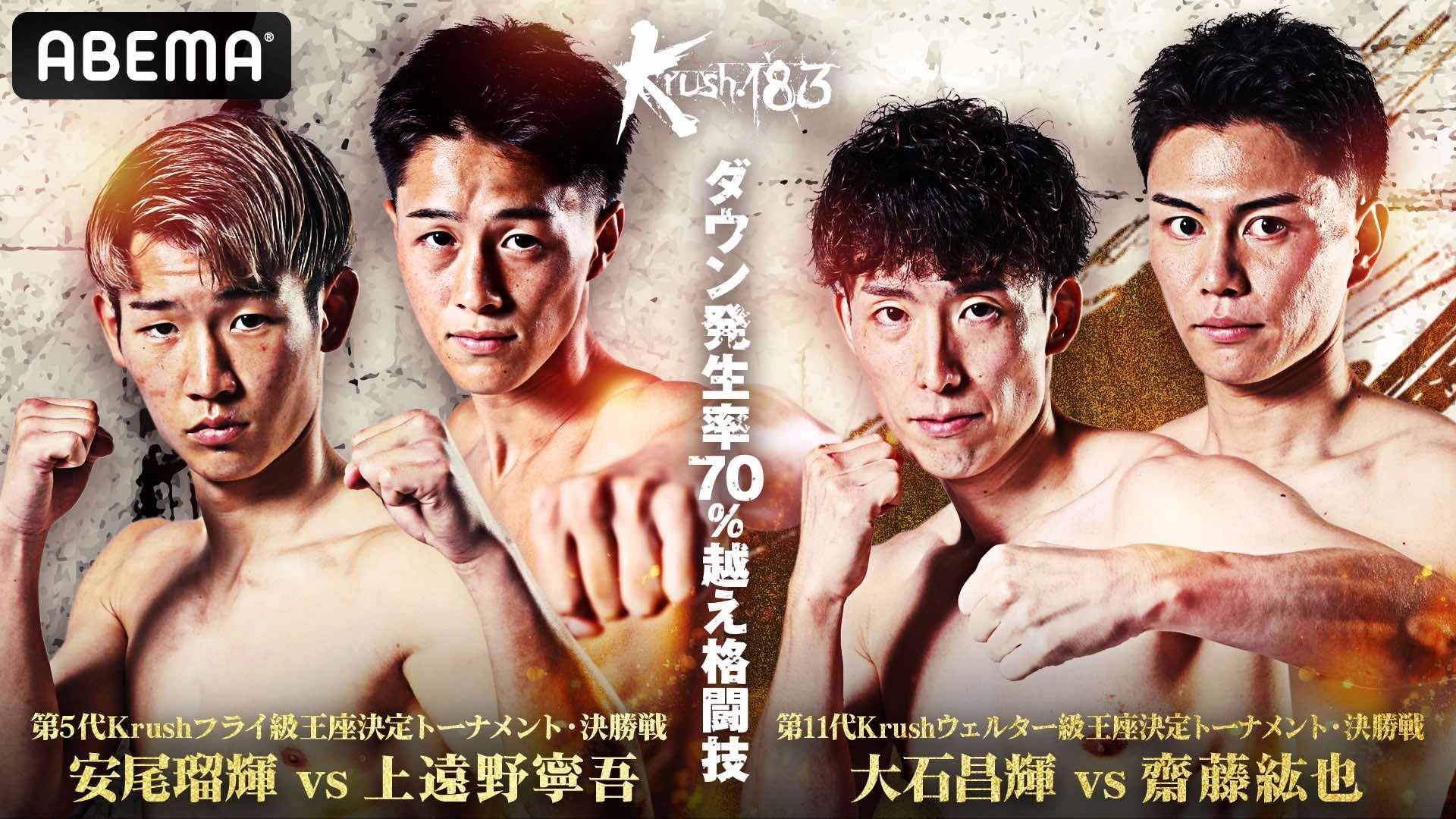 来る12月19日(金)後楽園ホールで開催される「Krush.183」の模様が、 テレビ&ビデオエンターテインメント「ABEMA (アベマ) 」で全試合・完全生中継されることが決定しました!ぜひ「ABEMA」で、試合の模様をお楽しみください!