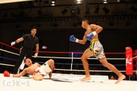 2R、武居の懐に入った隆聖は右ストレートを顔面に打ち込む。しかしそこから武居はより間合いのコントロールに慎重を期するようになり、隆聖の突進を横へのステップでかわし、直後に左ストレート、左ハイを放って襲う。ロープを背にする武居だが、リングを回って隆聖に詰めさせないj。そして右アッパーを突き上げると、隆聖はこの予期していなかった1発を直撃され後方にダウン。武居のノックアウト勝利となった。