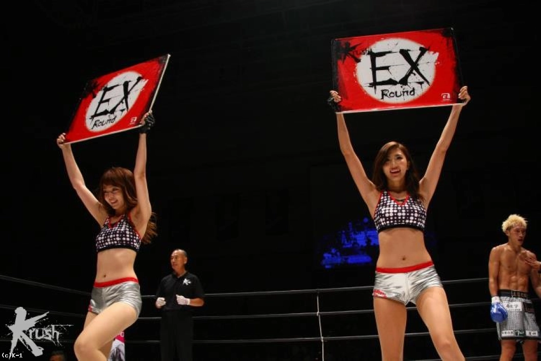 EXR、瑠輝也の左アッパーに岩崎は左フックをカウンター。しかしやや圧力が落ちたかの岩崎に対し瑠輝也はリーチを活かして左右ストレート、左ボディ、左ヒザと打ち込む。瑠輝也が左三日月蹴りをヒットさせると岩崎はガードがややボディに集まってくる。それでも岩崎はハイキックをヒットさせ、瑠輝也にマウスピースを吐き出させる。さらにボディを攻める瑠輝也に対し、岩崎もボディへのヒザを連発して終える。