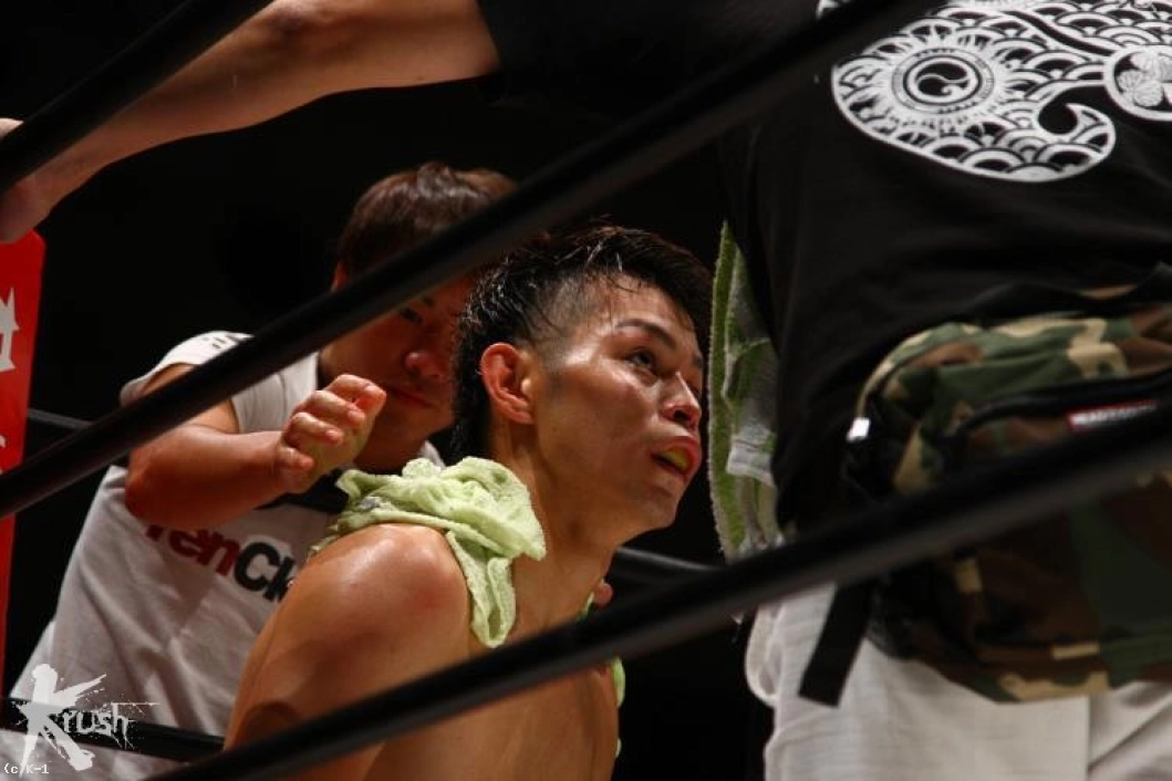 3R、このラウンドも前に出る岩崎に対し、瑠輝也もバックステップで距離を作りながら、時に押し返してミドル、ストレートと攻撃を返す。岩崎は右ストレート、左フックとパンチを当ててさらに攻めるが、ここで瑠輝也は右ボディストレートをリターンし、岩崎の動きを一瞬止める。しかし岩崎はすぐに反撃に移り、右ストレート、左ハイと瑠輝也に攻撃を返す。最後はコーナーに詰める岩崎に、瑠輝也も左右ボディアッパーを返して終了となる。