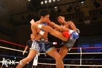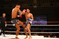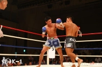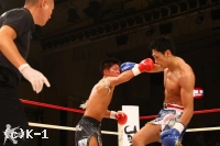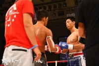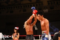 塚越は試合を決めんとボディへのヒザ、右ストレートと攻める。しかしロープを背負っいた渡部は左ストレートから前に出ていく。そしてここでも左ハイを繰り出す。塚越は前蹴りで渡部を下がらせ、2Rを終える。