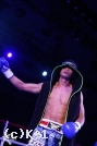(試合に臨むにあたって一番考えてたことは?)練習を一貫してやってたことを、リングが変わってもやること。それができたのかわからないですけど、その結果がコレ(ベルト)なんだと思います。(いま、何がしたいですか?)コレ巻いて、バイク乗って、そのへんをグルグルしたいなって思いました。しっかり守っていきたいと思います。(今後の展望は?)誰の挑戦でも受けますし、どんどん試合をしていきたいです。しっかり防衛していきたいです。(左右田選手が泣いていたのは?)知ってます、グッときますね。左右田さんにずっとバカにされ続けたんですけど、その左右田さんが一番喜んでくれたので」