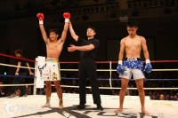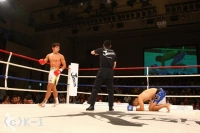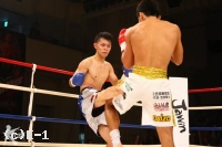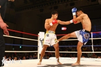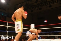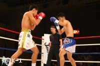 岩崎は前に出て佐々木を押していく。しかし佐々木のガードは破れない。佐々木は右ストレートを浴びせ、横へフットワークして岩崎の前進をいなす。前に来る岩崎のガードの隙間を縫って、アッパー、右クロス、左ミドルと打ち込む佐々木。岩崎は逆転を狙って顔面前蹴り、ハイキックと放つが、クリーンヒットは得られずタイムアップとなる。