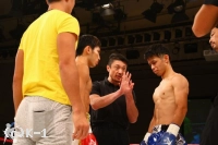 ラウンド終盤、岩崎がバランスを崩したところを佐々木はロープに詰め、まず左ボディフック。これで岩崎を打ち合いに呼び込み、岩崎の左フックに逆に左フックをカウンターしてダウンを奪う。