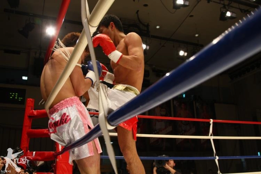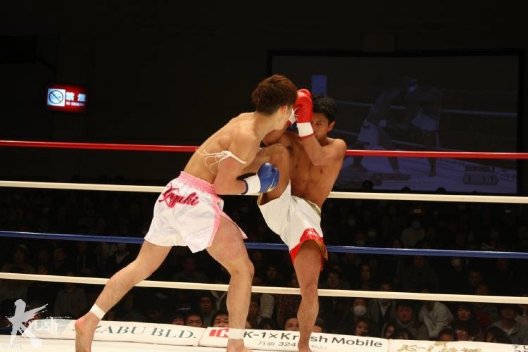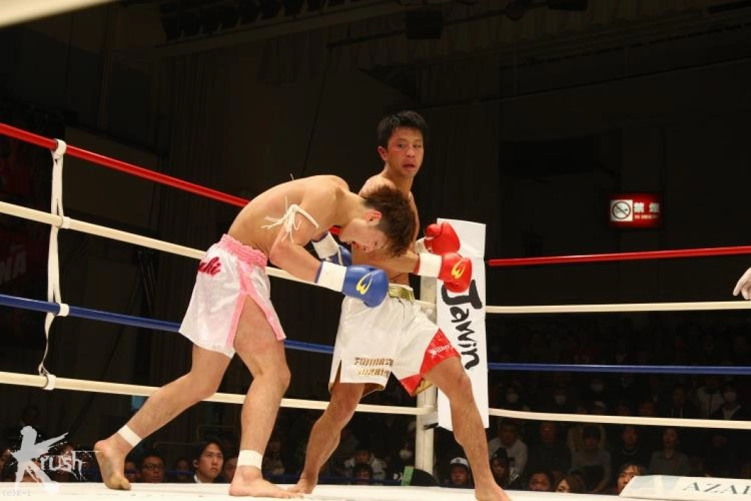 2R、初回にダウンを奪っている里見は前に出て右ミドルでとらえるが、藤橋も右ボディフックを逆に里見に効かせる。動きに疲れの感じられる里見に対し藤橋も消耗があるが、右ボディフック、右フック、左ストレートと次第にヒットが目立ってくる。