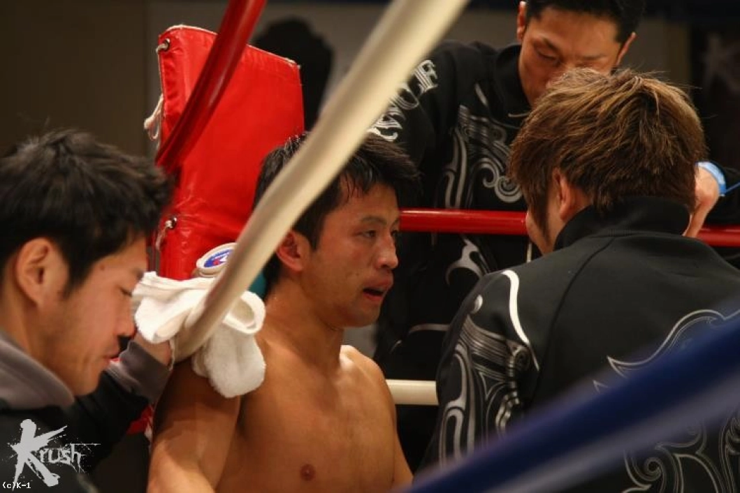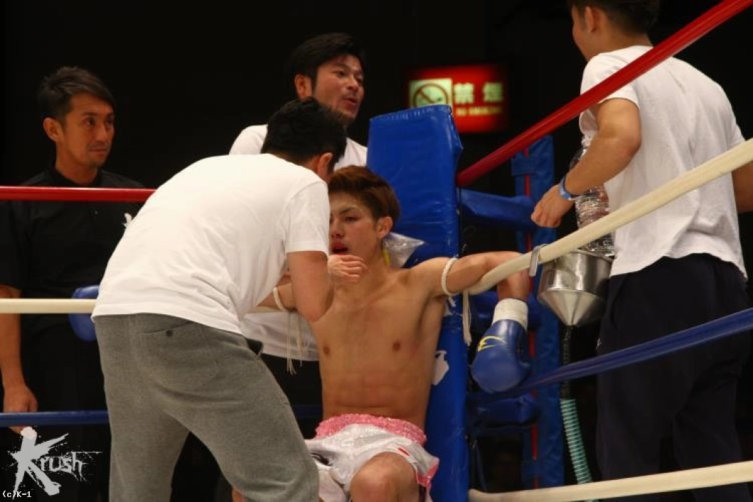 「試合の感想は?)ひさびさの試合で。パンチが得意だったんですけど、1Rで倒せて調子に乗ってたら力んでしまって、2R~3Rに巻き返されたというか。(対戦相手の印象は?)パンチが得意なのは聞いていて、サウスポー対策もしていたんですけど、思ったより強くてビックリしました。(初めてのKrushのリングの感想は?)お客さんもたくさん入っていて戦いやすかったですね、よかったです。(今後の目標は?)こんなんじゃチャンピオンになれないので。もっと体力をつけて、チャンピオンになれるように練習します」