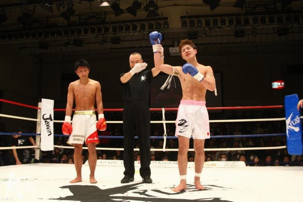 判定は28-27、27-27、28-27の2-0で里見。先取したダウンのリードを守って勝利した。
