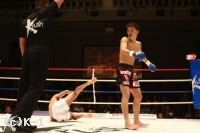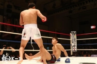 お互いダウンが1度ずつとなるが、山本は安保が蹴りを放たんとしたところに左フックをタイミングよく合わせて2度目のダウンを奪取。しかし立ち上がった安保は右ミドルを音を立てて打ち込み、そこから右ストレート、左ストレートと繋いで山本に2度目のダウンを与える。
