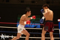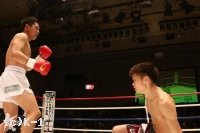 「(試合の感想は?)勝てたからいいんですけど、一回ダウンさせられると火がついちゃって、ガードが下がっちゃうクセがあるので、そこを反省して次につなげたいと思います。(相手の印象は?)山本真弘選手はベテランで凄い選手ですが、負けるイメージはまったくなくて、想像どおりかな、と。(決勝は郷州征宜選手か渡辺武選手の勝者と対戦することになるが?)郷州選手はパンチがあるので、いまの自分の戦いかたじゃダメだと思います。冷静に戦えるようにしたいです。(意気込みは?)今回はおもしろい試合ができて、自分もお客さんも納得できたと思うので、次回も期待しててください」