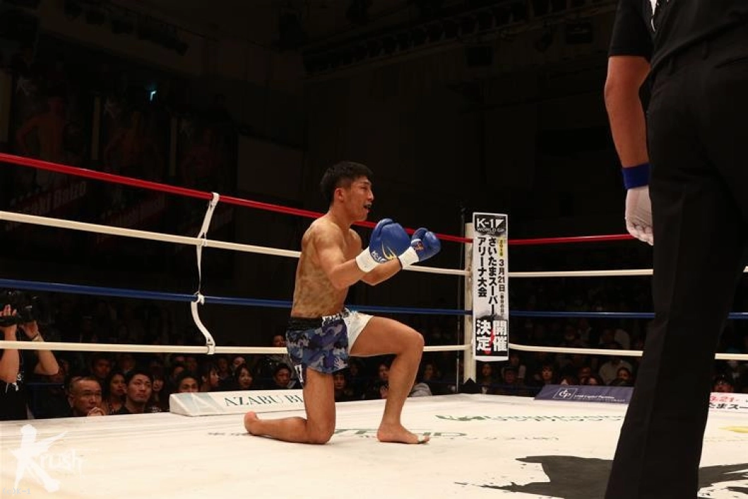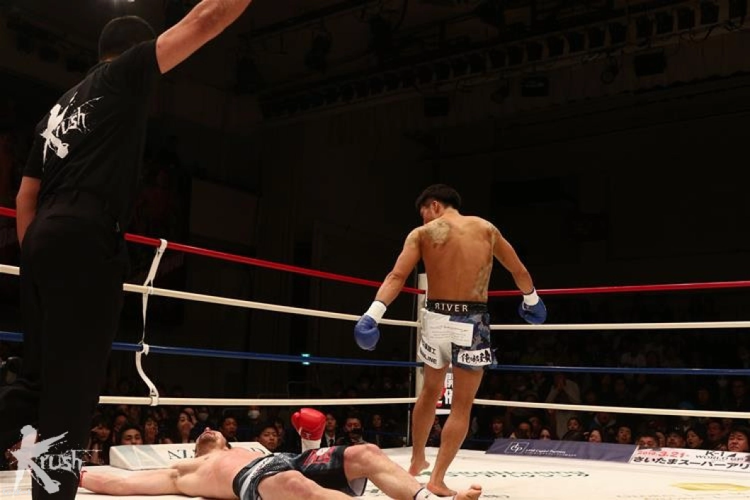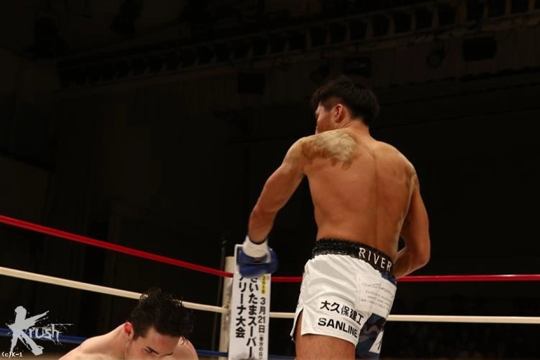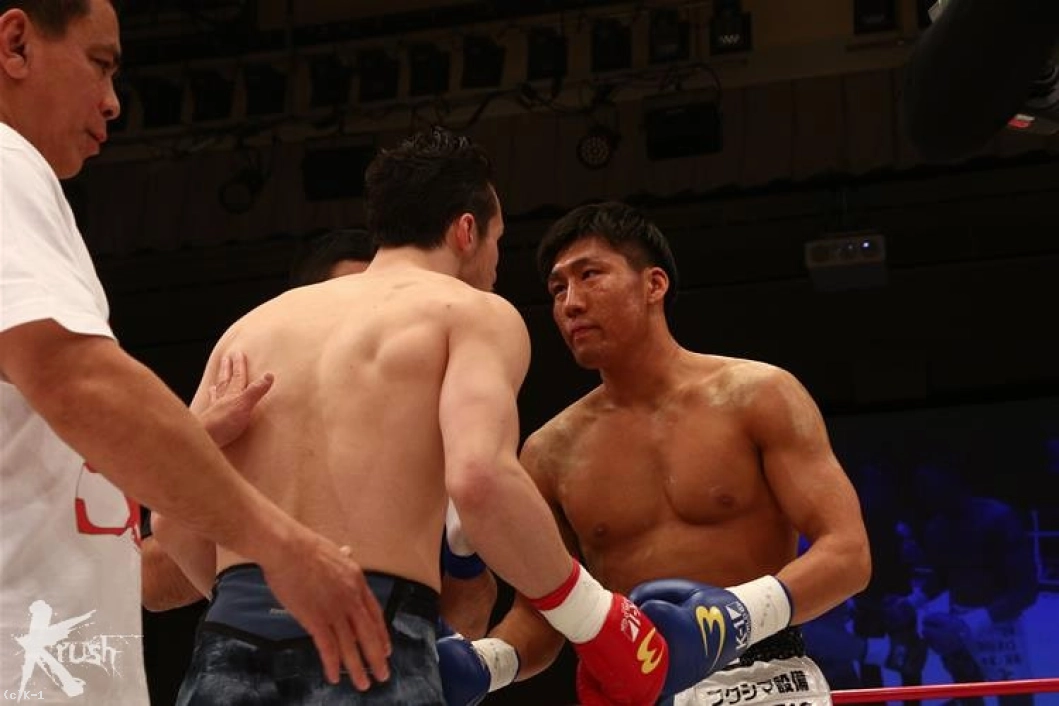 「(試合を振り返って?)作戦は腹を効かせて。相手は腹もアゴも強くないので。とにかく1R、長引いたら面倒くさいと思ったので。結果、最高のかたちになったのでよかったです。(感触は?)凄くよかったですね。その前に、相手の左フックがちょっと効いちゃって。でも、そのあとすぐにいけたんでよかったです。(今後の目標は?)木村選手は本当にチャンピオンでもいいくらいの選手だと思っているので、そこに勝ったことで、また次にいい試合を組んでもらえればいいと思います。チャンピオンにはぜひ挑戦したいですね。(今後もKrsuhのリングに?)そうですね、できるのならば」