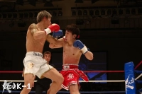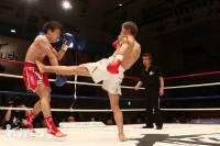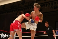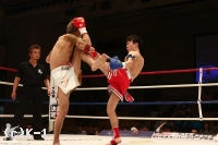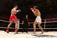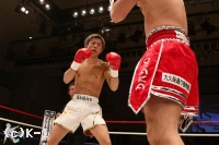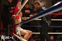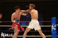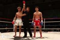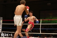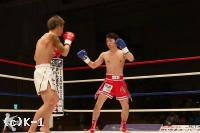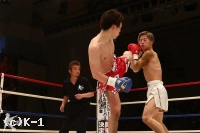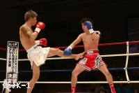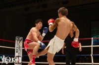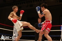 3R、鼻血の見られる金子だが、小只の踏み込みに右ストレート・右ミドル・右ヒザとカウンターを狙う。小只もしかしこれで怯まず左ストレートで飛び込む。だが、ここで金子の放ったヒザがローブローとなってしまい口頭注意が与えられる。再開となる、打ち合いの中で金子の蹴りが再び下腹部に。金子には警告となり試合が再開される。両者近距離での打ち合いとなり、ラウンド最後は小只が左クロスを中心にした気迫の連打で金子を下がらせて終了。