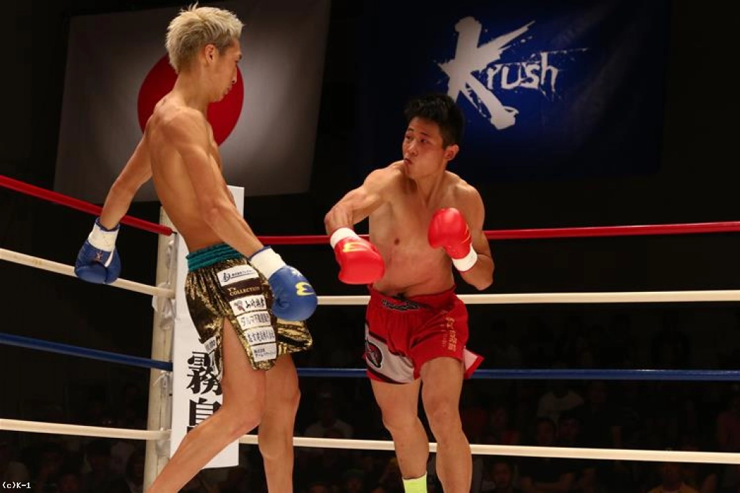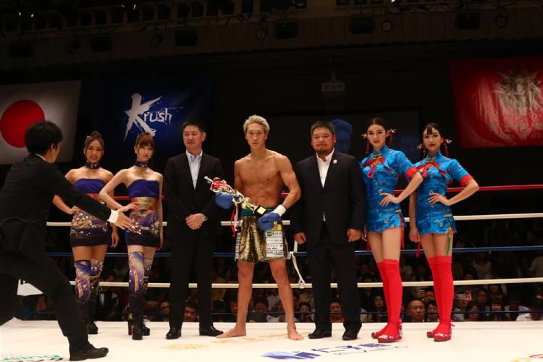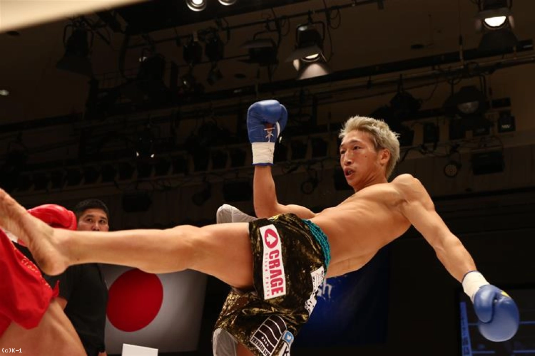 「(試合を振り返って?)今回、試合に向けて過去一番練習してきて。相手の研究も一番したんですけど、それがうまくはまって。まず腹に利かせて、最後はヒザで仕留めるっていうのは最初から決めていたので、バッチリはまりました。(対戦相手の印象は?)すぐに倒しちゃったんであまりわからないんですけど、パンチはフックがガードの上からでも重くて強いなと思いました。(今後の目標は?)ウェイ・ルイのライバルを倒しちゃったんで、Krushで言うことではないですけど、次はウェイ・ルイを倒したいですね」