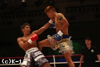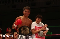 「(試合を振り返って?)2月にウェイ・ルイ選手に負けて、考えることがたくさん出てきたというか。このKrushのベルトを獲って防衛して、K-1に上がることに満足してた部分がどこかにあって。それが2月に出てしまって。でも、強い選手に負けたことで、自分の未熟さを痛感して、そこで強くなれるきっかけができたので。それで前戦の中国、そして今回の防衛戦と勝利を飾ることができました。(どういう王者の姿を見せたい?)Krushの-63kgというベルトは歴史のあるものなので。Krushイコール-63kgだと(初代王者・梶原)龍児さんも言ってましたし。自分もそれを肌で感じているし、その気持ちがあったからこのベルトにたどり着いたし。その気持ちを忘れずに突き進んでいきたいなと思います。(今後の目標は?)課される課題を克服していくというか。人生もそうですけど、満足したらそこで伸びしろはなくなると思うし。格闘技だけじゃなく、人生は満足せずに日々努力して、高みを目指して生きていくことが、人間としても成長に繋がると思うので、そういうところを表現していきたいと思います。(試合後、お子さんもリングに上がったが?)自分の中で(子どもを)力にして挑んだので。自分だけじゃなく、周りの支えもあって、こうしてリングで輝けるので、おごらずに。自分の息子がドンドン大きくなっていく姿をお客様にも見せられればと思います」
