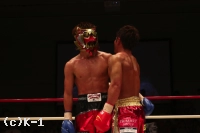 EXR、前に来る左右田に中澤は下がりながらも右アッパー、左フックと振るってヒット。左右田は前に出て左フック、右ストレートを繰り出すが、手数は中澤が上回るか。プッシングで中澤をロープ際に下がらせ、左右のフックでとらえる左右田。だが、中澤も左右のボディフックを連打で返す。左右田はこれに右クロス、ボディへの右・左ヒザ。