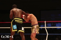 「(日本語で)ヨロシクオネガイシマス!(試合を振り返って?)スゴイ、オイシイ(笑)。ハードでしたけど、凄く幸せな気分です。今回、試合は2年ぶりなんで少し怖かったです。でも、勝てたのでよかったです。この数カ月、ハードなトレーニングをやってきて、今日の試合では自分の力をほぼ出せました。(工藤勇樹選手の印象は?)工藤選手がバックキックを出してきたのには少し驚きましたが、とくに問題はなかったです。(11月にK-1でヘビー級トーナメントが開催されることについては?)出場したい気持ちでいっぱいです。このあと1週間は休みたいですが、そのあとはすぐに練習をやりたいと思います。今回の試合は11月のトーナメント査定試合だと聞いているので、出られると信じています。(最後に日本のファンにメッセージを)オツカレサマデシタ(笑)。試合に勝ててうれしかったです。日本には強いファイター集まっていると思います。仲間のために全力をつくして、多くのKOを見せていきたいと思います。11月の相手が誰であっても、ベルトを巻く準備ができています。今回は小比類巻さんがサポートしてくれたので感謝しています」
