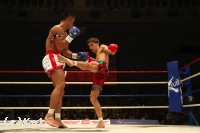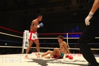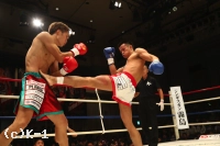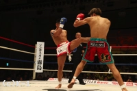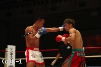2R、スピードで上回り察知が早い安保は横蹴り、右ローと先手で郷州を攻める。郷州も右ローを返すが、安保の右ローがより強く郷州をとらえる。郷州のパンチを安保は堅固なガードで防いで当てさせない。そして依然ステップを止めることなく右ミドル、左ローと郷州に入れる。だが、郷州はジャブで顔を紅潮させられながら、安保を追って出て右ストレートを決める。だが、安保も右ロー、左ローと決め郷州の足を止める。