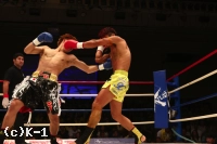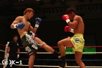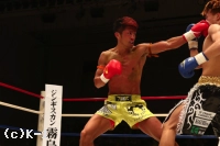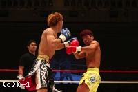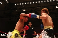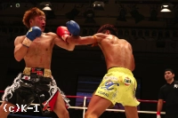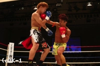 2R、横山が左ボディで来たところを闘士はフックのカウンターで狙い打ち。闘士はやはり距離を詰めさせずに間合いを保ち、前に来る横山にカウンターを狙う戦法を取る。横山は前蹴り・ローで闘士を追う。闘士はしかし圧力を掛けさせず、左フックで横山をとらえていく。鼻血の見られる横山。闘士は距離の開け方が的確で横山のパンチに空を切らせる。しかし横山はならばとローキック。そしてハイキックから右フックの猛ラッシュを闘士に掛け2R終了を迎える。