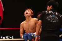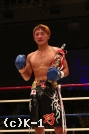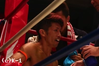 「(試合を振り返って?)宣言どおり、バチバチに打ち合っておもしろい試合ができたので満足です。ただ、点数をつけけるとしたら60点くらいです。KOできなかったので。(相手の印象は?)闘士選手、30代と思えないくらいのスタミナと精神力が凄くて。やっぱり、ベテラン選手だなと思いました。(今後、-60kg戦線でどんな戦いをしていきたい?)まず、一人はチャンピオンの安保選手を倒して。そこから無敗のチャンピオンになろうかなと思ってます。そのあとに世界の、K-1のリングで活躍したいと思います。(今後の目標は?)これからもっともっと強くなって、おもしろい試合をするので応援よろしくお願いします」