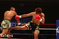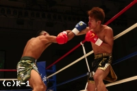 3R、石塚は前蹴り、左ミドルを的確に打ち込むが、林はこれを受けても下がらない。石塚をロープに追い詰め、右ストレートと左フックの連打で襲う。林は左ボディフック、右ボディストレートと石塚を削り、グイグイと前に出て石塚に蹴りの距離を作らせない。林はヒザがローブローとなってしまう攻撃もあったが、ラウンド最後まで得意とする強打で右ストレート、左フックと石塚を追い詰め試合を終える。