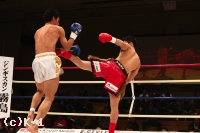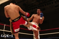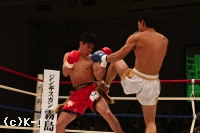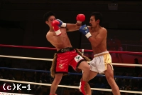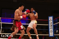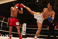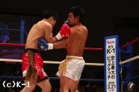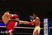 3R、川口はやはりジャブとストレート、左ボディフックと橋本に迫る。橋本はこれを手でさばいてクリーンヒットさせず、ボディへのヒザ、ストレートを打ち込み動きを止める。それでも川口は前へ出るが、橋本はジャブを合わせ、右ストレートのカウンターを打ち込む。だが、それでも川口は遮二無二パンチとローで出る。しかし橋本はやはりフワリと跳んでの跳びヒザを見せ3Rを終える。判定は29-29、29-28、29-28の2-0で川口。攻めて出る姿勢で勝利を掴んだ。