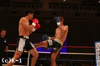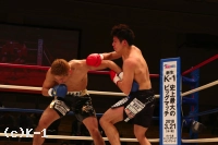 2R、鈴木は左フック、右ストレート、ヒザとやはり佐野に攻勢。しかし佐野も右ロー、左インローと脚を効かせていく。鈴木はパンチに合わせてローを出されるためカットができず佐野の蹴りをもらってしまう。脚のダメージでややパンチに体重が乗らなくなっている鈴木。さらに佐野は鈴木の左手の上から右クロスをかぶせて効かせ、ここから連打で鈴木に迫って2Rを終える。