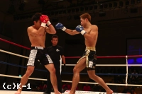 1R、ともにオーソドックスで佐野がリング中央に立つが、鈴木がロー、ストレート、ヒザと積極的に攻撃を繰り出す。そして佐野が右ストレートを放ってくるが、ここは鈴木が逆に右ストレートを当て佐野をヨロめかせてダウンを奪取。