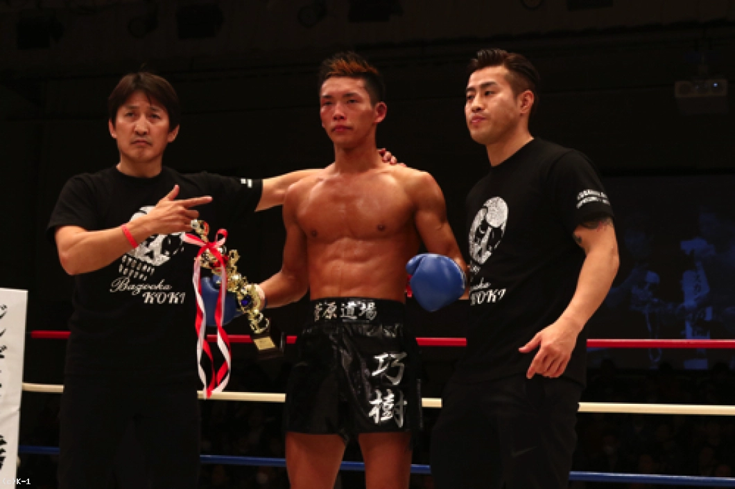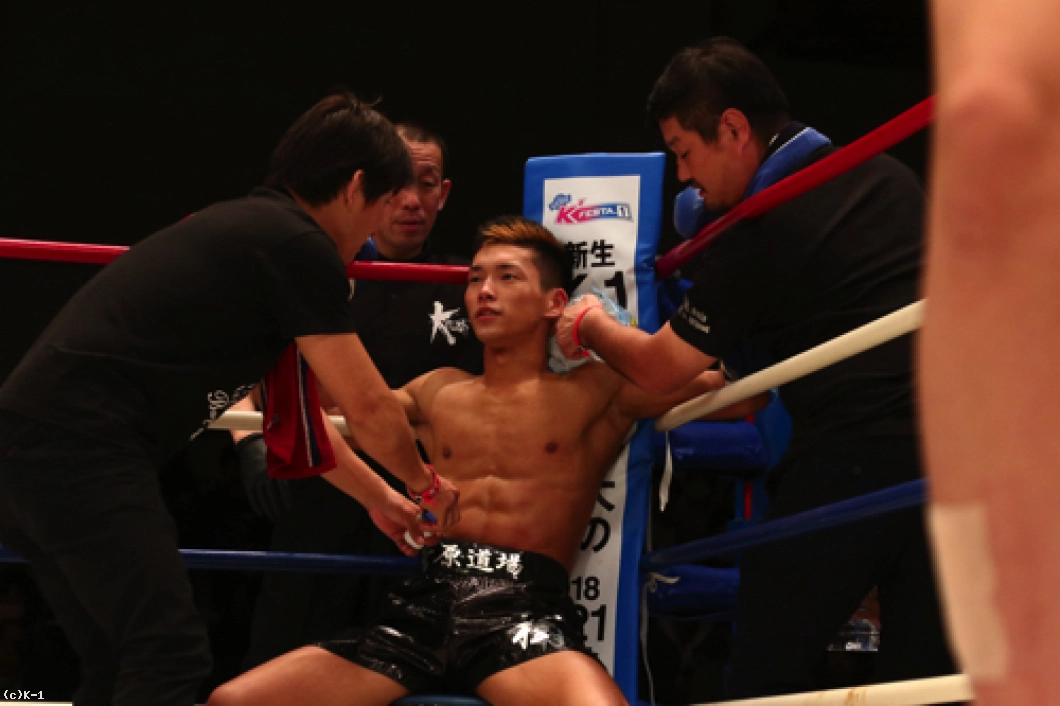 3R、両者鼻血が見られる。稲石は頭を上下左右に動かしながら、フック・ミドル・ボディ打ちと、とらえづらい動きでバズーカを攻める。やや失速気味のバズーカは稲石のトリッキーな動きを持て余し気味で、ミドル・フックと浴びてしまう。しかし判定は30−28、30−29、29−28の3−0でバズーカ。格上の稲石を降す勝利を得た。