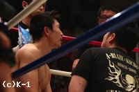 「(試合を振り返って?)ちょっとうまくいかないですね。練習でやってきたことを出すのは難しいなと痛感しました。かといって、そんなことを言うヒマもないので。もっともっとKOを出す試合を不器用なりにがんばります。(相手の印象は?)攻撃が読めないというかブンブン丸というか、タックルをやられてビックリしちゃって(苦笑)。でも、ある程度は読めました。(今後の目標は?)練習どおりに器用に戦えるように、必ずKOできるような試合を目指していきます」