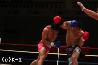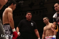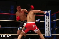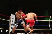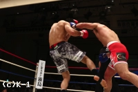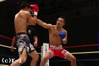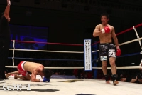 しかし林が回転技を放った直後に藤村は右ストレートをヒット。林は一瞬膝をつくが、これはダウンと見なされず。だが攻勢となった藤村はさらにパンチで攻め、前に来た林の顔にヒザを打ち込む。しかし林はそのままタックルのように藤村を押し倒し、ここで林の頭部が当たってしまい、藤村は左目じりから出血する。再開すると林は左右の強打で攻めるが、藤村は右ストレートをカウンターで打ち込み、ダウンを奪って終える。