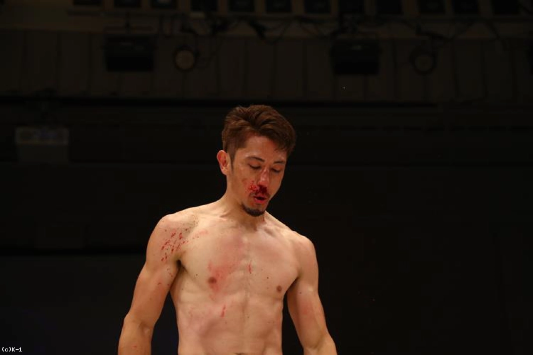 「(試合を振り返って?)いやあ、勝てて安心しました、本当に。(ここで寺崎選手がおめでとう』と声をかける)寺崎さん、ありがとうございました!最近は連敗続きで応援とかも減っちゃって。KOできたので、ここからまた頑張って勝ち上がっていきたいと思ってます。(対戦相手の印象は?)僕が言うのもヘンな話なんですけど、本当にすばらしい、人間ができている方なので。ああいう人になりたいな、と。そういう人と殴り合うのも、格闘技の魅力なんじゃないかな、と。試合が本当に楽しかったです。ありがとうございます。(今後の目標は?)寺崎選手もメッチャ格好いい人なんですけど、今回はその寺崎選手と戦った松下大紀っていうのも、子どもたちに格好いいなって思ってもらえると思うので。そういう今まで倒してきた人とか、ああいう寺崎さんと拳で語った気持ちとかを、自分が体現して上に上がっていきたいと思います」
