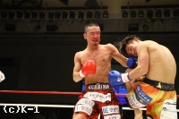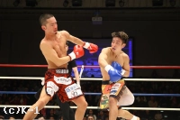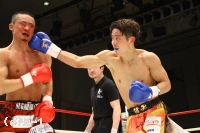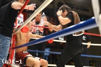 延長R、島野はヒザ、ロー、左ボディフックと攻撃を散らす。これに対し大岩は左右のフックを振るって向かうが、やや動きが緩慢になる。島野はワンツーからボディへのヒザ、左ボディと見舞い、大岩の左右フックを被弾する場面があっても前に出ていく。ボディへのヒザも忘れない島野。大岩は消耗が目立ち、体をつけて押すようになってしまう。島野はボディフックから顔への右フック、ボディへのヒザと大岩を攻めて試合を終える。判定はジャッジ3者とも10-9で島野。パワフルな難敵・大岩をくだし、ベルトを守った。