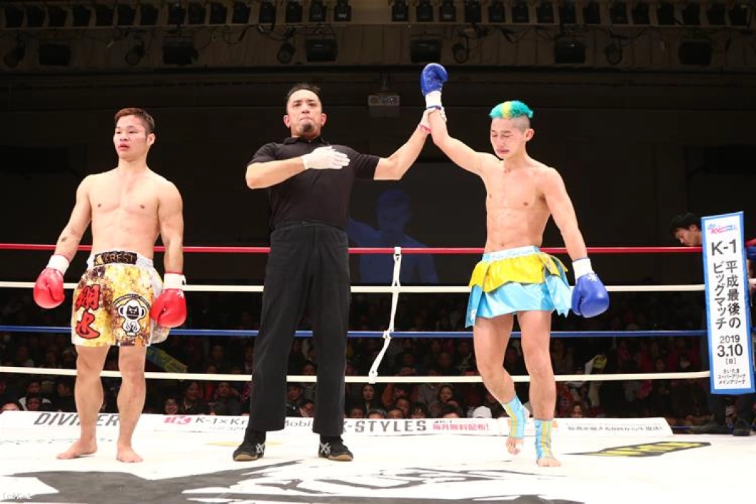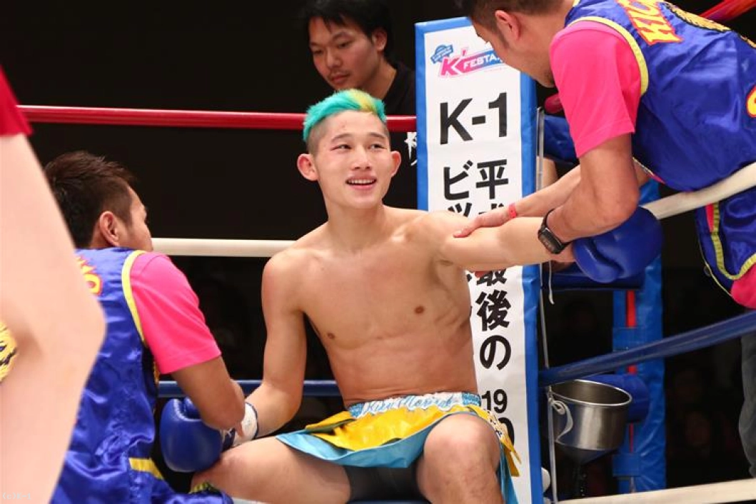 「(試合を振り返って?)今回負けたら当分試合しないってツイッター発表してて、覚悟を持って挑んだ試合で3連敗から脱出できて。格上の選手にギリギリですけど勝てたのでうれしいです。(対戦相手の印象は?)思ってたとおりの印象でパワーが凄いなと。スピードはないなと思っていたので。パンチがあって強い選手でした。(今後の目標は?)このまま勝ち続けて、いつかK-1には出たいっていうのはあります。KOできる選手になるのが一番の目標だと思います」