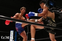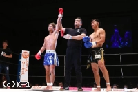 3R、倉崎は変わらず右ローでKAZUNORIの左足を効かせる。足のダメージがあるKAZUNORIだが、倉崎が蹴ってくるところに右フックのカウンターを狙う。倉崎は右ストレートから左フック、左ボディフックと攻めて出る。そしてKAZUNORIをコーナーに詰め連打を集めてスタンディングダウンを奪う。左フック、右ストレートの強振で迫る倉崎にKAZUNORIも右ストレートと左フックを強振して応戦。激しい打ち合いの中ゴングが打ち鳴らされる。判定は30-26、30-27、30-26の3-0で倉崎。パンチ一辺倒にならず蹴りも織り交ぜ勝利した。