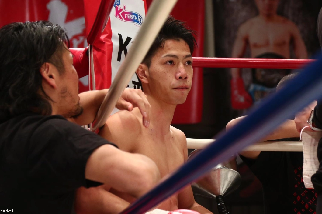 「(試合を振り返って?)勝ったことにホッとしてるんですが、自分の中でKOできなかったら罰ゲームっていうのを勝手にやっていて。KO勝ちできなかったのでやっちゃったって感じですね。(対戦相手の印象は?)試合前、生意気なこと言ったりしたんですけど、昔から活躍していた選手でリスペクトはしていたので。出貝選手は思った以上に気持ちが強かったです。(今後の目標は?)今日、このあとスーパーバンタムのトーナメントの決勝がありますが、勝った方の最初の指名挑戦者になれるように一戦一戦勝っていきたいなと思います」