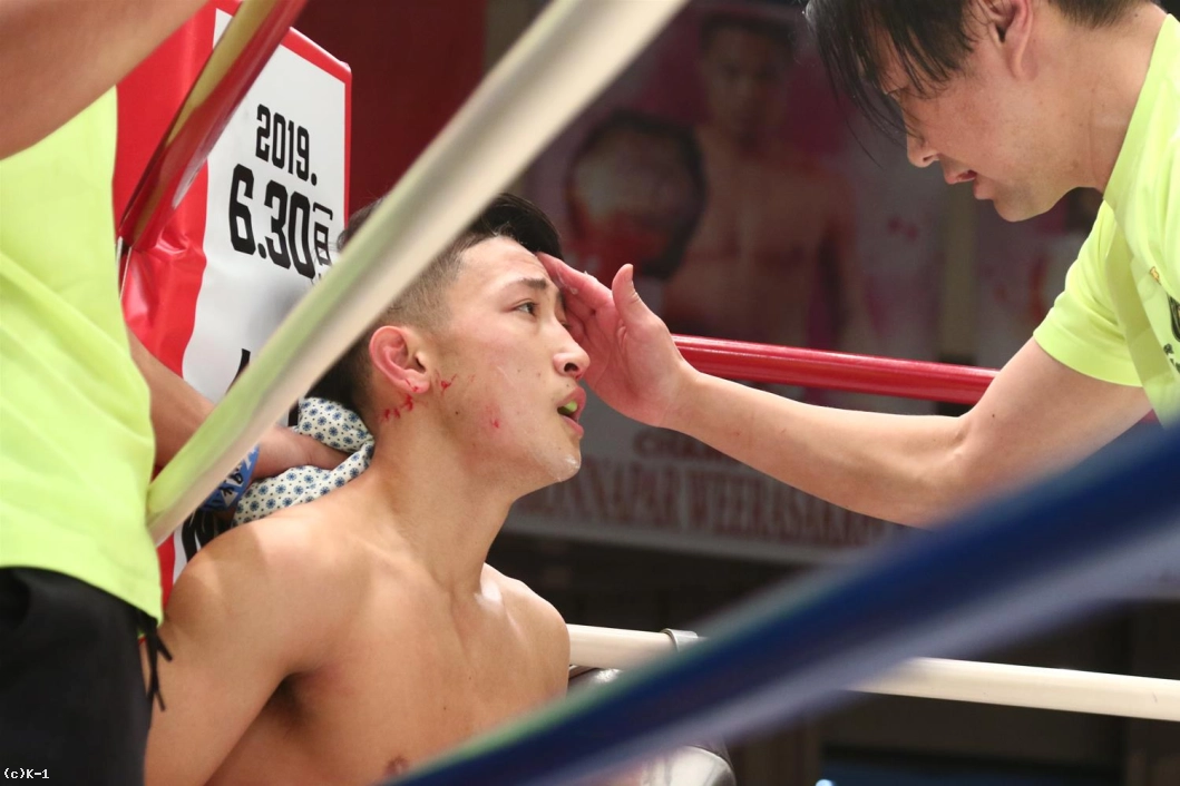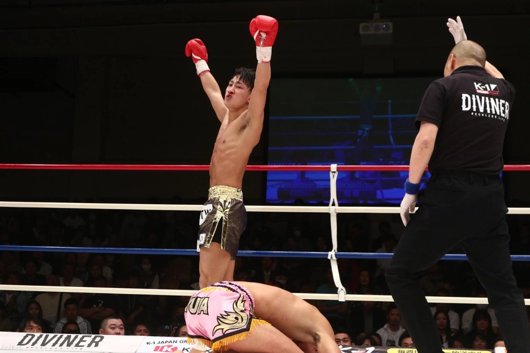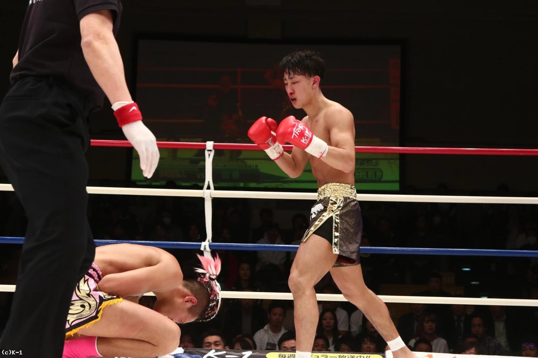 3R、やや動きを戻した優谷は左ミドル、左ヒザ、左ストレートと攻撃を伸ばす。だが、伊藤が前に出てきて、右ストレート、右ボディアッパーと打ち込み、優谷を後退ベースに追い込む。そしてさらにボディフックを打ち込み、優谷を前のめりに倒してダウンを奪う。立ち上がった優谷に伊藤はさらに右ヒザをグサリ。これに優谷はダウンを喫し、伊藤のKO勝利となった。