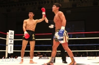 3R、トリッキーな動きの朝久に山本は前へ出て間合いを詰めパンチ勝負を仕掛けるが、朝久はジャブ・プッシングからローキック。朝久は距離が少しでも生まれると前蹴り、ハイキックも飛ばしていく。山本はショートフックを左右回転させて朝久を攻めるが朝久は自身も左右の連打を返し、太ももにヒザも打ち込む。山本はハイキックを繰り出すが、これは朝久に大きなダメージを与えるには至らない。判定は30−28、30−29、30−29の3−0で朝久。独自の朝久スタイルで山本を封じ込み勝利した。