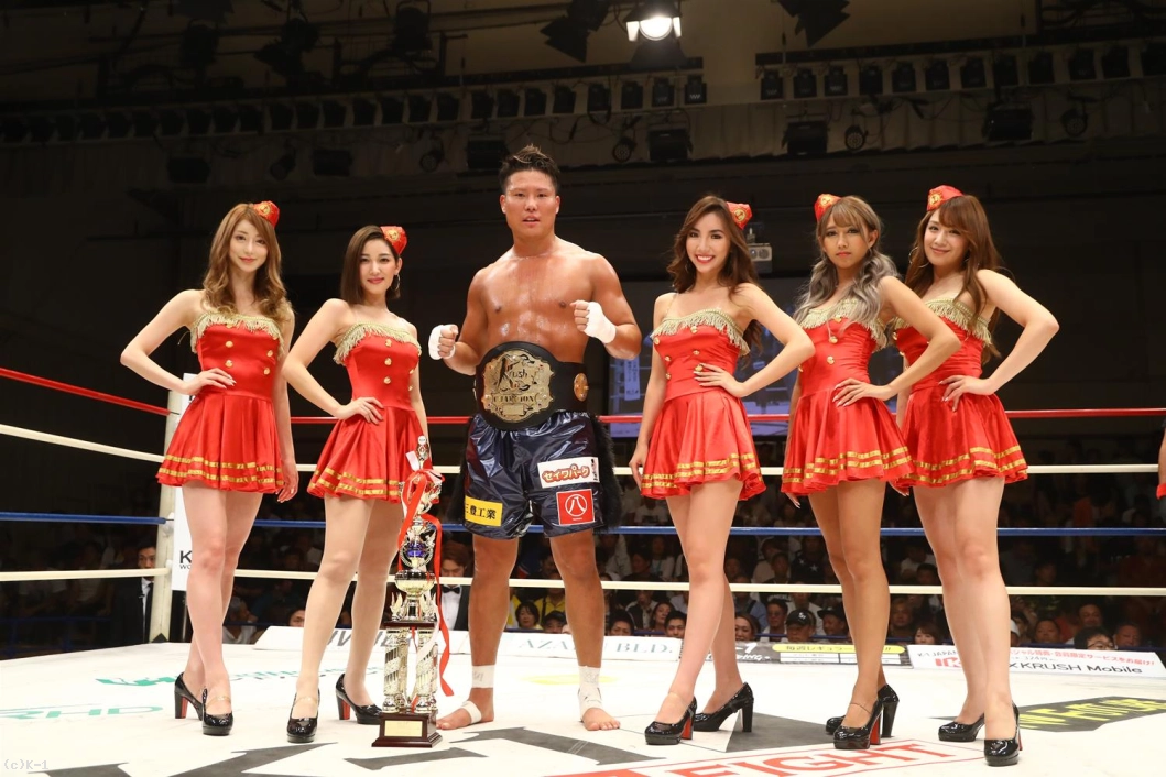 「今日はみなさんありがとうございます。(ベルトを腰にして)似合うかな、これ。でもK-1のベルトの方がカッコいいし、すぐ獲りに行きます。いま九州の選手が育っていて、元は俺もRUIもSATORU成合選手も瓦田脩二選手も同じジムで練習していました。いま九州の格闘技のレベルが上がっていて、ファンも増えています。来年、この勢いをさらに盛り上げてK-1福岡大会、是非やりましょう。先週、愛鷹選手がチャンピオンのカリミアン選手を倒して、かなりシビれました。愛鷹選手とは1勝1敗で決着ついてないんで、一緒に愛知を盛り上げてもいいじゃないかと思ってます。よろしくお願いします」
