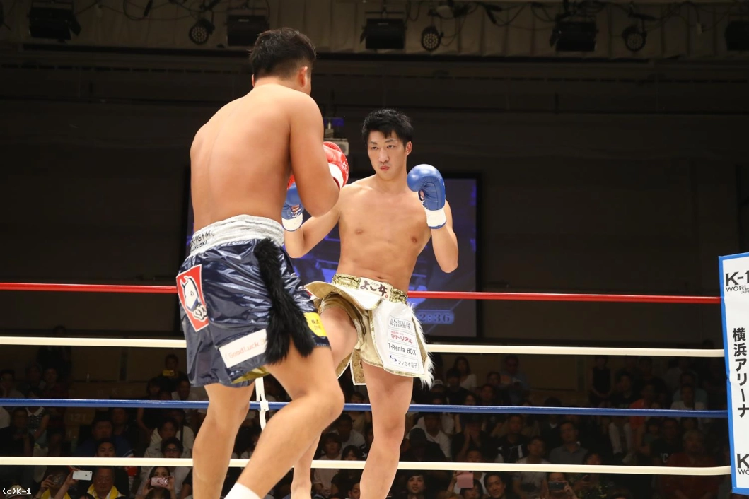 「(試合を振り返って?)だんだん記憶が戻ってきて。うまくやられたなという感じですね。警戒してたパンチをモロにもらってしまったというか。そこですね、敗因は。1Rの立ち上がりは僕のほうが圧力をかけてましたし、相手がいやがってるのはわかりました。2Rになって、いききれないのが自分の弱さですね。もっともっと練習して、自分のものにしていかないとなって思います。(感慨深さは感じた?)向かい合ったとき、お互い目は合わせてないですね。お互いに目を合わせると、いけるとこいけなくなっちゃうのかなって、正直感じました。K-Jeeさんと戦えてよかったです。悔しいですけど。ただ、試合後のマイクはへたくそだなと思いました(笑)。またやり返して、僕がK-1福岡を宣言したいと思います。(ファンにメッセージを)期待を裏切ってしまって、申し訳ない気持ちでいっぱいです。もっともっとがんばっていきます」