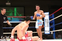 3R、前に出る佐野だが、中島の右クロスを浴び、一瞬置いてダウン。立ち上がった佐野はなおも右ストレートを振るっていくが、中島は顔への後ろ回し蹴りで打ち抜き、佐野はこの試合3度目のダウン。ここでレフェリーがストップし、中島がインパクトある2勝目を挙げた。