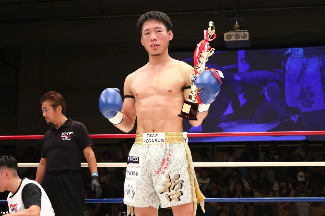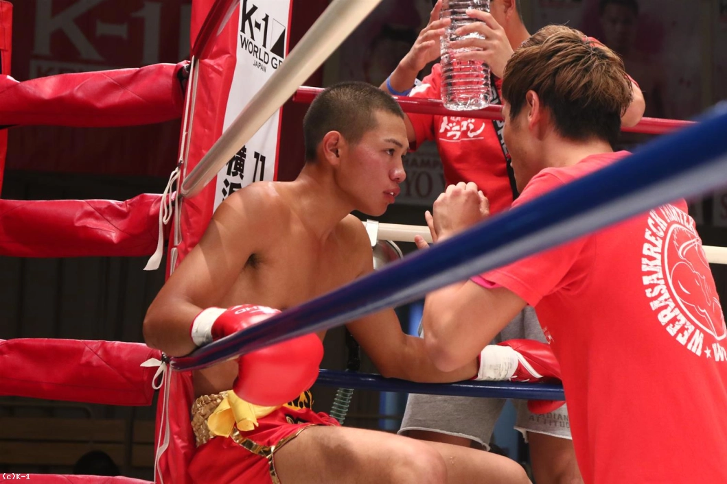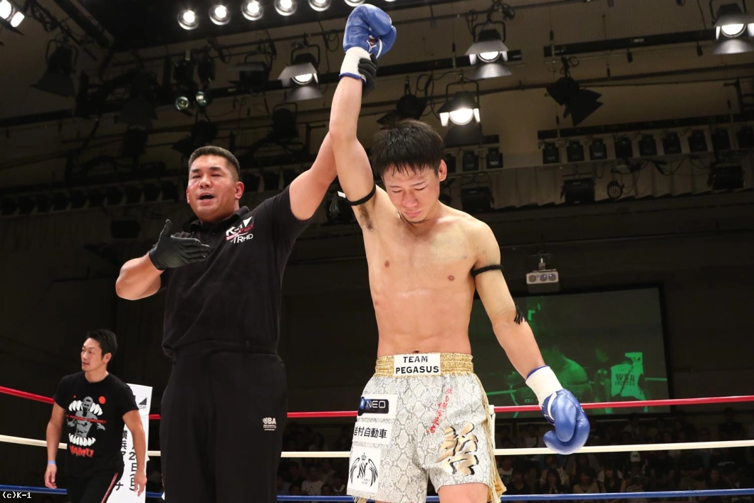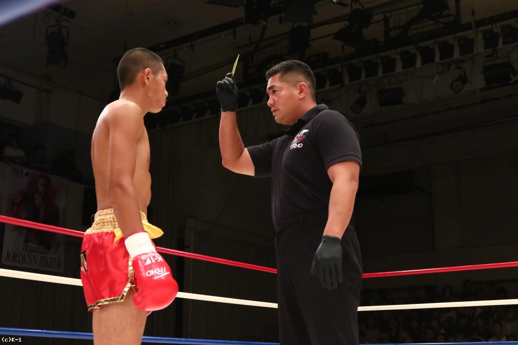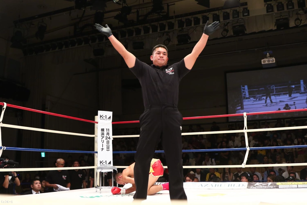 「(試合を振り返って?)K-1ジム総本部に所属して、いままでで一番応援団の人数が多かったので、いいKO勝利を見せたかったんですが、最後はローブローになってしまって。こんなかたちのTKO勝利になってしまったので、そこは本当に申し訳ありませんでした。ここまでしっかり減量と練習とがんばってきて、こんな結果になってしまったのは正直、悔しい気持ちです。(対戦相手の印象は?)正直、体重オーバーを聞いたときはナメてるのかなと思ったんですけど、再計量でなんとか試合できる体重まで落としてくれたので、そこは感謝しています。体重オーバーは気にしてなくて、とにかくKOで勝ちたい気持ちでした。(今後の目標は?)30歳ですけど、これからどんどん勝っていって、KRUSHのベルトを目指せるくらい強くなっていくので、今後も応援よろしくお願いいたします」